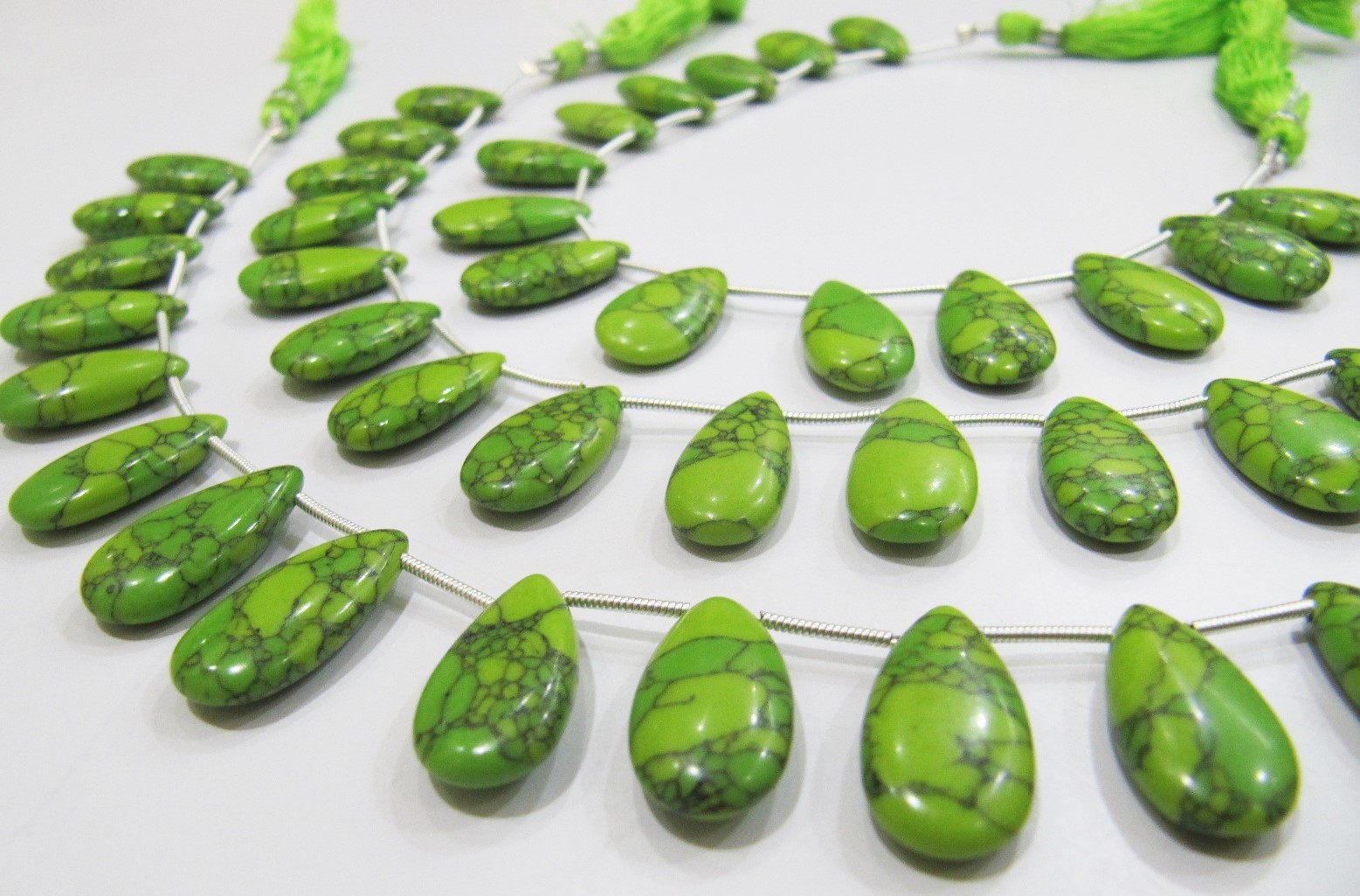 Explore in english - AAA Quality Green Turquoise Smooth Plain Magnesite Pear Shape Beads .