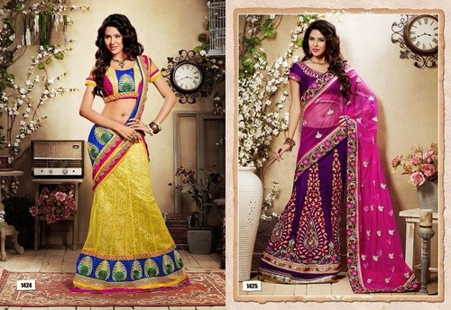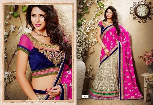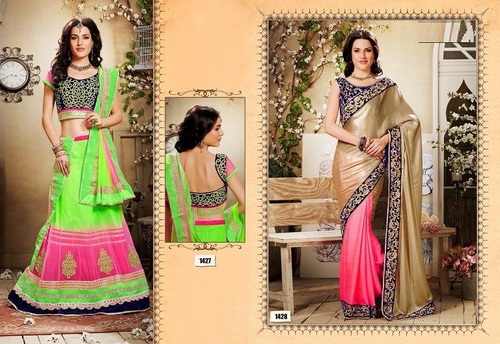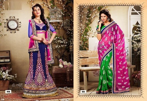 We are instrumental in trading a qualitative range of Lehenga Designer Sarees including desginer sarees and lehenga's, DESIGNER SAREES AND LEHENGA'S, DESIGNER SAREES AND LEHENGA'S etc.