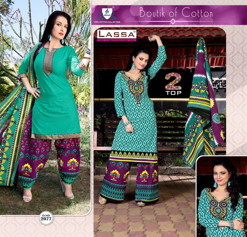We are instrumental in trading a qualitative range of Lasa Two Tops Cotton Suits including Cotton Suits Materials, Cotton Suits Catalog Wholesale, Cotton Salwar Suit Catalogue etc.