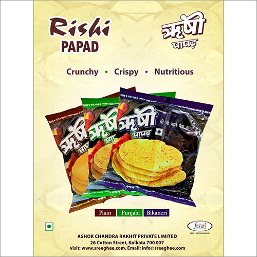 We are instrumental in trading a qualitative range of Rishi Papad including PLAIN BIKANIRI PUNJABI, Papad, PAPAD, APPALAM etc.