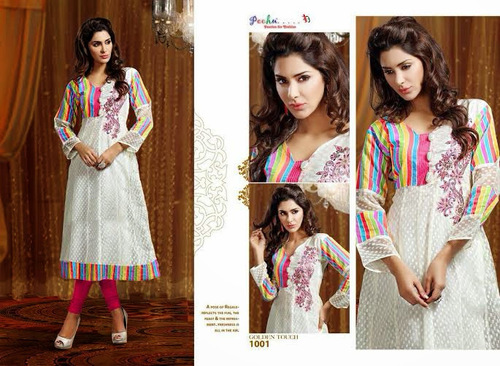 We are instrumental in trading a qualitative range of Chanderi Salwar Suit including FIONA LINEN, GEORGETTE, Golden Tulip Kurtis, Cotton Kurtis, 1000 MILES 2--TRENDY COTTON KURTZ etc.