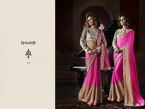We are instrumental in trading a qualitative range of Printed Sarees including KHWAAB KARIZMATIC SAREES, GEORGETTE, Italia Sarees, Silk Sarees, LT ZARA, CHIFFON SAREES etc.