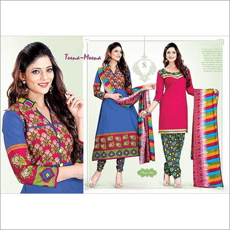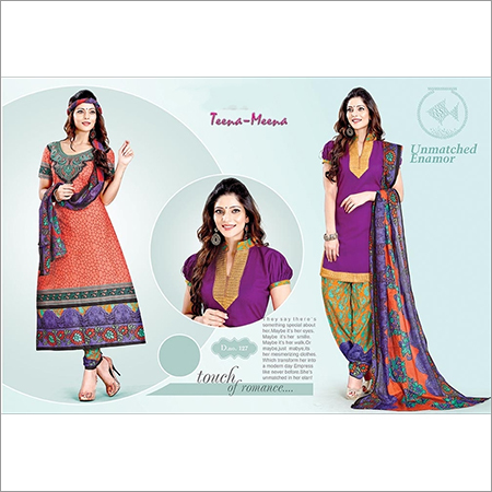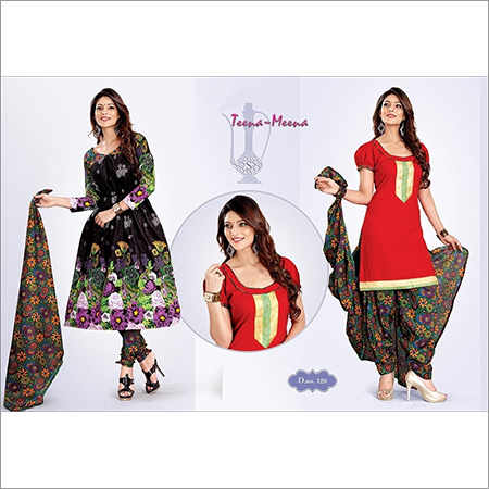We are instrumental in trading a qualitative range of 2 Top 1 Bottom Cotton Printed Dress Material including Ladies Wedding Dresses, Casual Churidar Salwar Suit, Embroidered Wedding Dress etc.