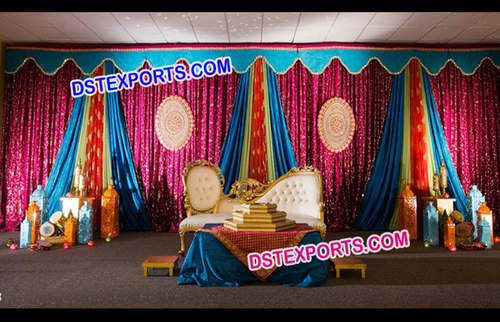 We are instrumental in trading a qualitative range of Wedding Mandap Backdrops including Wedding Designer Embroidry Backdrop, Indain Wedding Hand Embrodried Backdrop Curtains, New Designer Wedding Mandap Backdrops etc.