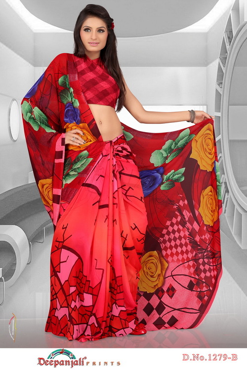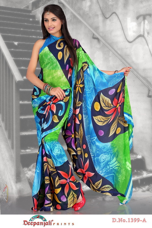 We are instrumental in trading a qualitative range of New Printed Sarees including Regular Wear Sarees, Green Color Saree, Gujarati Saree etc.