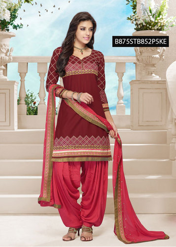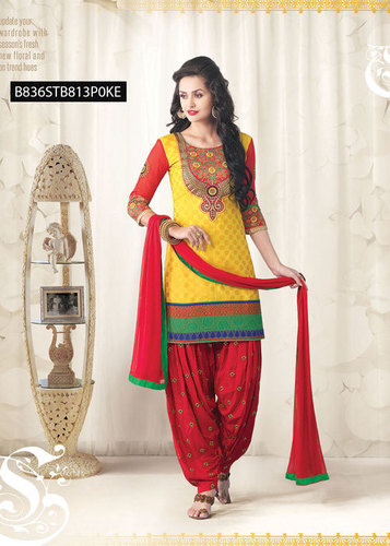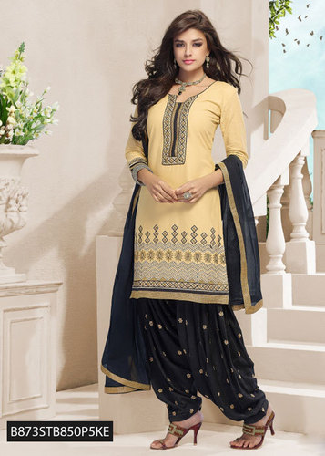 We are instrumental in trading a qualitative range of Patiyala Suit including Unstitched Cotton Suits, Fancy Embroidery Patiyala Suit, Designer Casual Wear Suits etc.