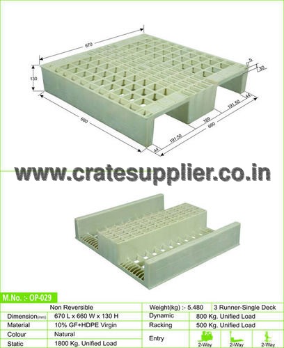 We are instrumental in trading a qualitative range of Plastic Pallet including 3 Runner Open Deck Plastic Pallet, Plastic 3 Runner Single Deck Plastic Pallet, Industrial 9 Leg Single Deck Plastic Pallet etc.