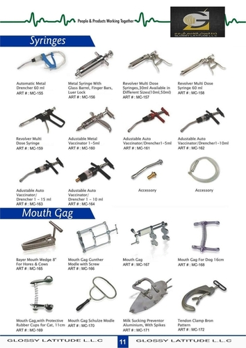 We are instrumental in trading a qualitative range of Veterinary Surgical Instruments including GLOSSY VET, Bits, Spurs Tools etc.