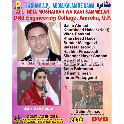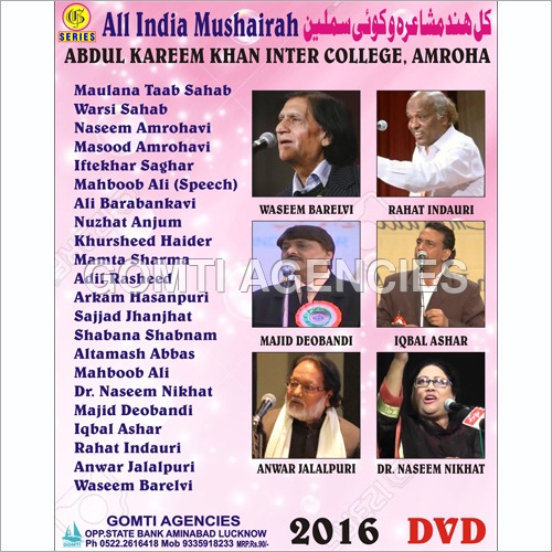 We are instrumental in trading a qualitative range of Mushaira Cd Dvd including Almi Mushairah 92 In Buabai DVD, Biswan Mushairah-2015-2016 DVD, Dewan Mushairah-2016 DVD etc.