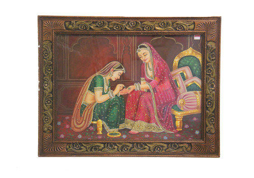 We are instrumental in trading a qualitative range of Teakwood Frame Jharokha Style Painting including Rajasthani Lady Doing Sringar - 2 Ladies, Rajasthani Lady Doing Sringar with Mirror in hand, Rajasthani Lady Doing Sringar - 2 Ladies etc.