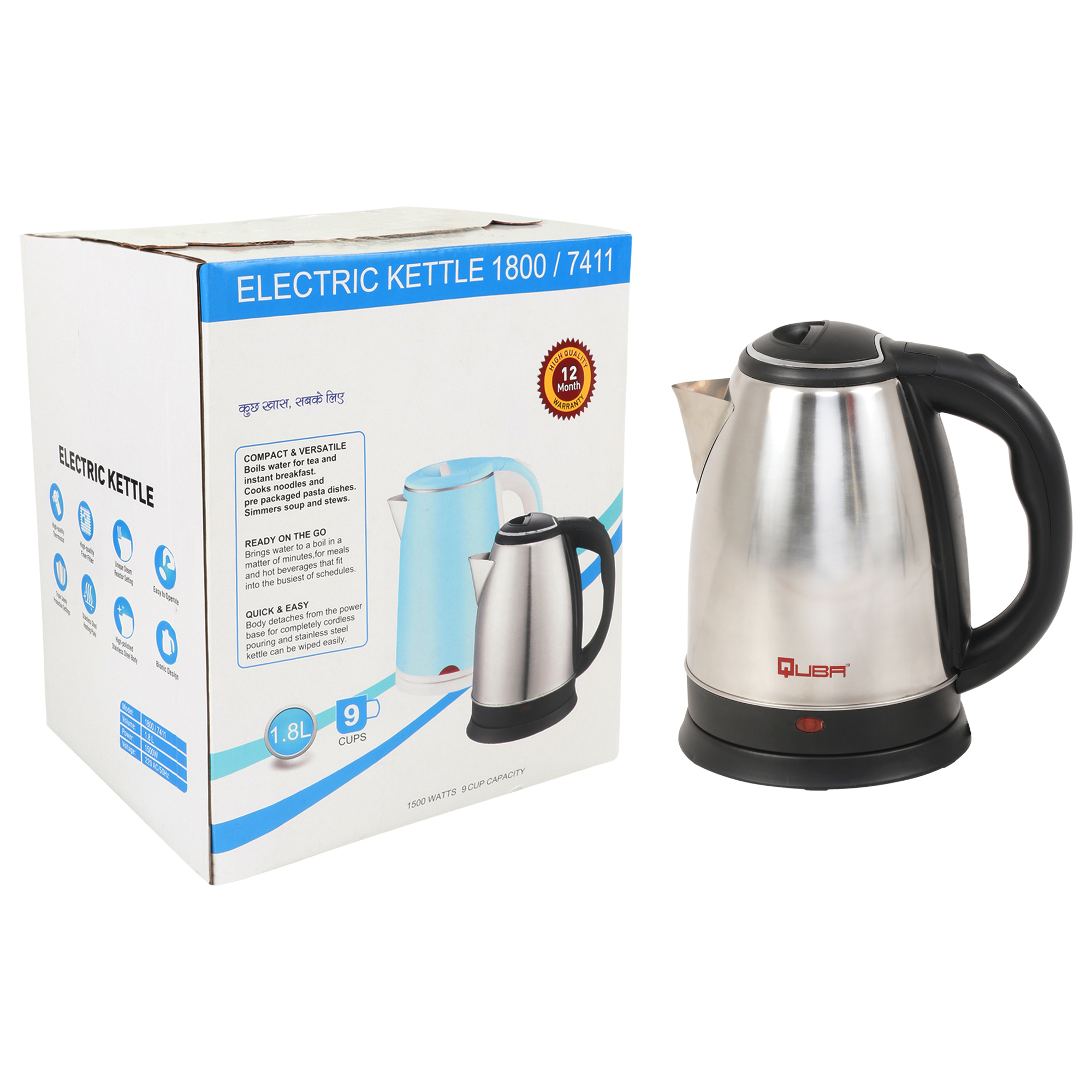 सिल्वर क्यूबा स्टेनलेस स्टील 1.8 लीटर इलेक्ट्रिक कॉर्डलेस केटल