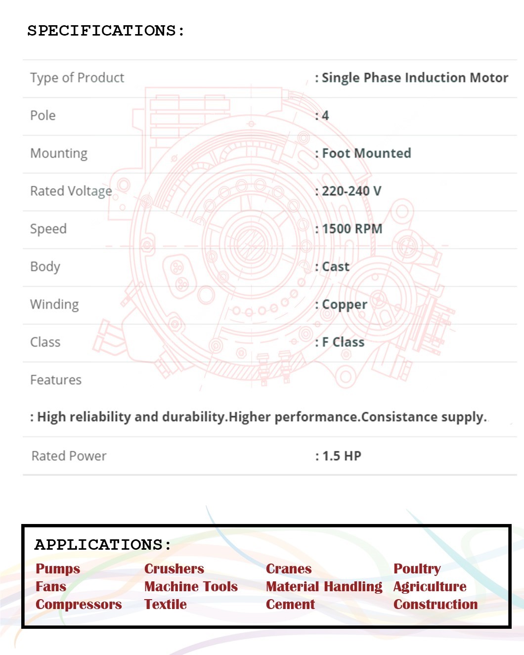 Explore in english - 1 PHASE 1.5 HP CAST IRON MOTOR