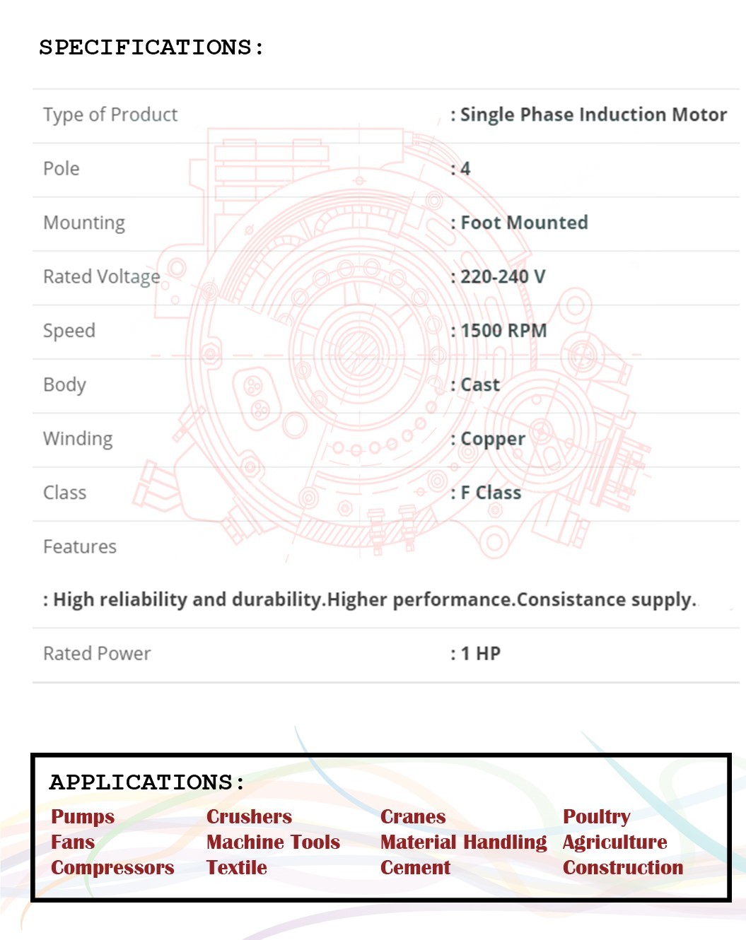 Explore in english - 1 PHASE 1 HP CAST IRON MOTOR