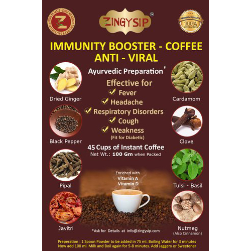 100 ग्राम ज़िंगिसिप इम्यूनिटी बूस्टर कॉफ़ी एंटी वायरल कॉफ़ी - आयुर्वेदिक जड़ी बूटियाँ और विटामिन ए और डी