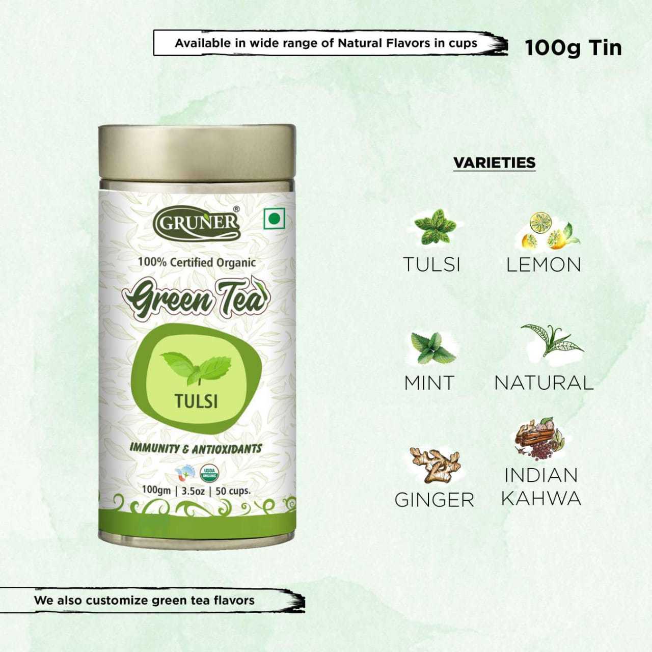 Explore in english - 100g Tulsi Organic Immunity And Antioxidants Green Tea