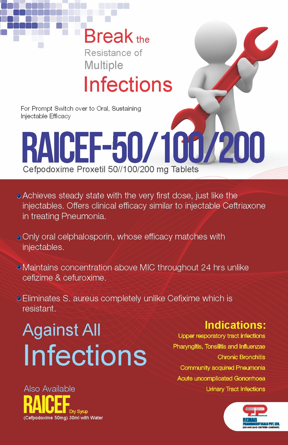 | सामग्रियां | Cefpodoxime Proxetil Dispersible 100 MG Tablets |