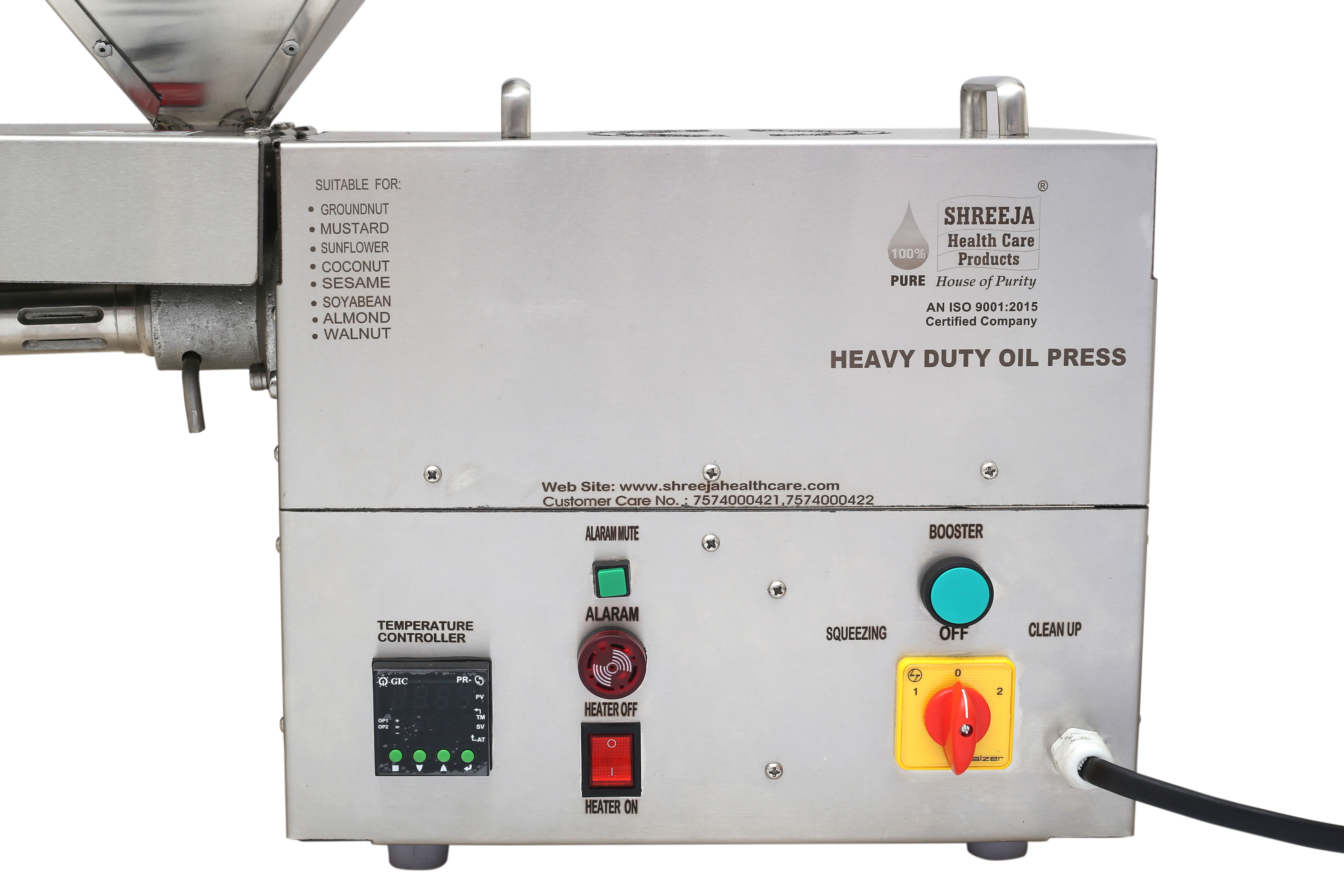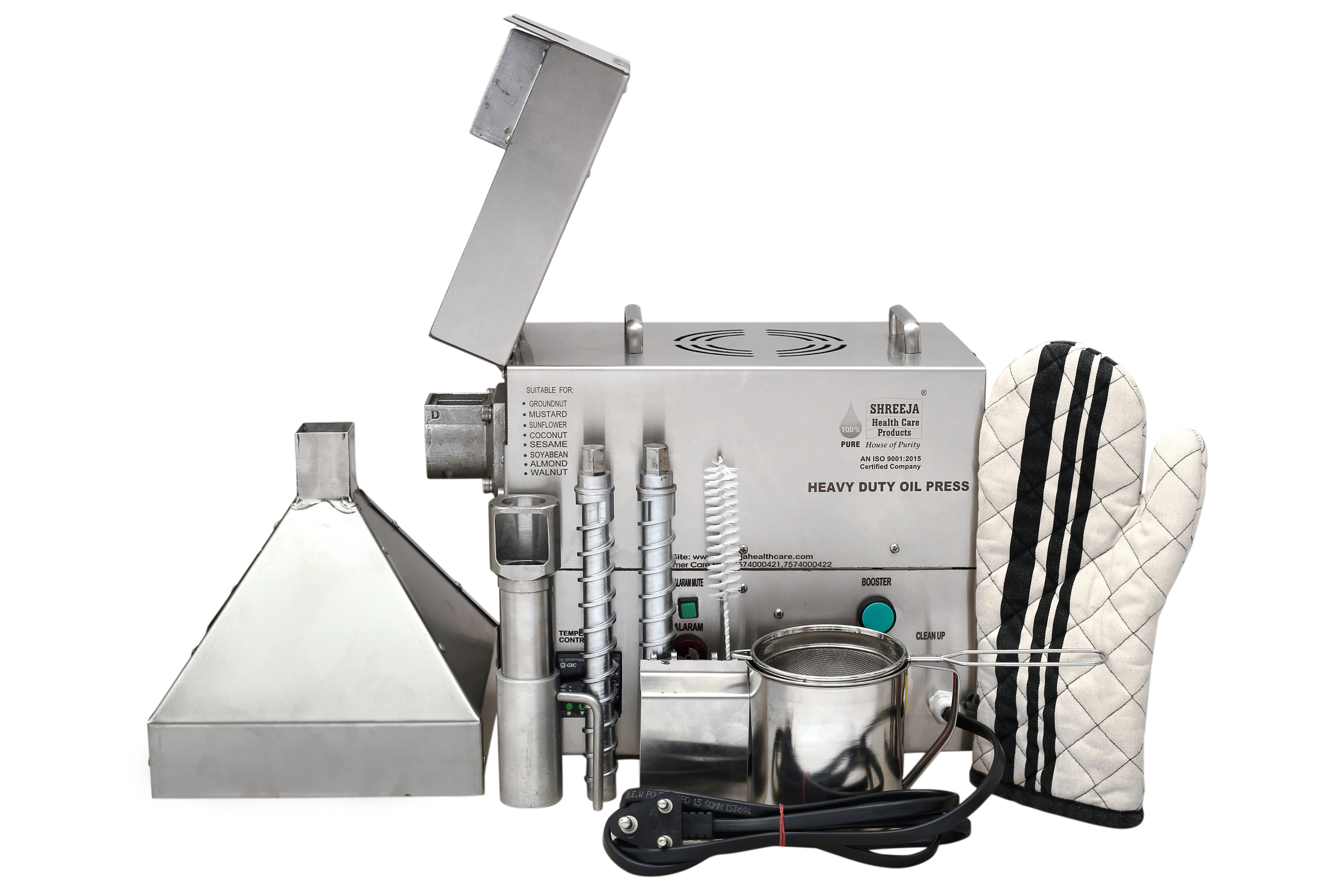 | एक्सेसरीज़ | hopper, Squeezing rods, Squeezing tubes, lock pin, Slug Cover, Brush, Oil Collector, Oil strainer, Hand gloves, power cable |