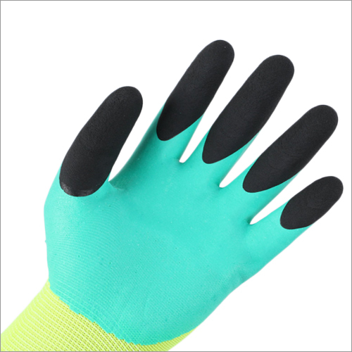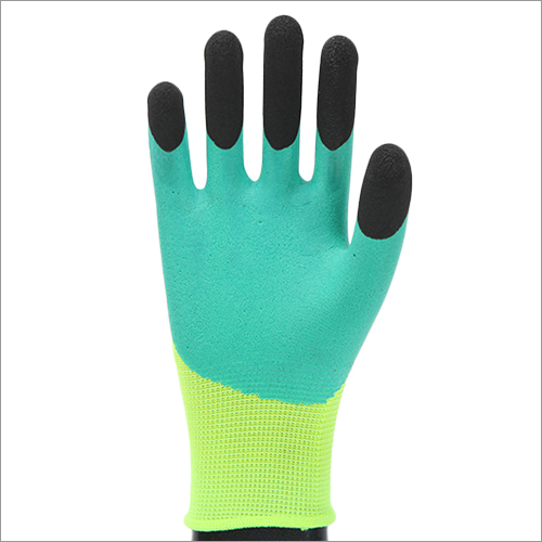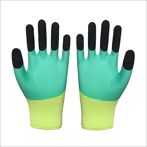 Explore in english - 13G Polyester With Green Foam Latex Finger Gloves