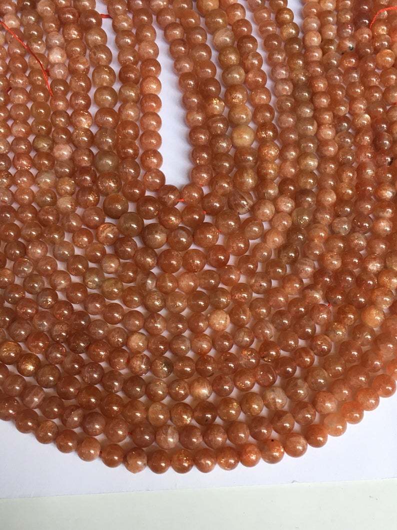 15 इंच के सनस्टोन गोल 8 मिमी मोती, सनस्टोन समान गोल मोती