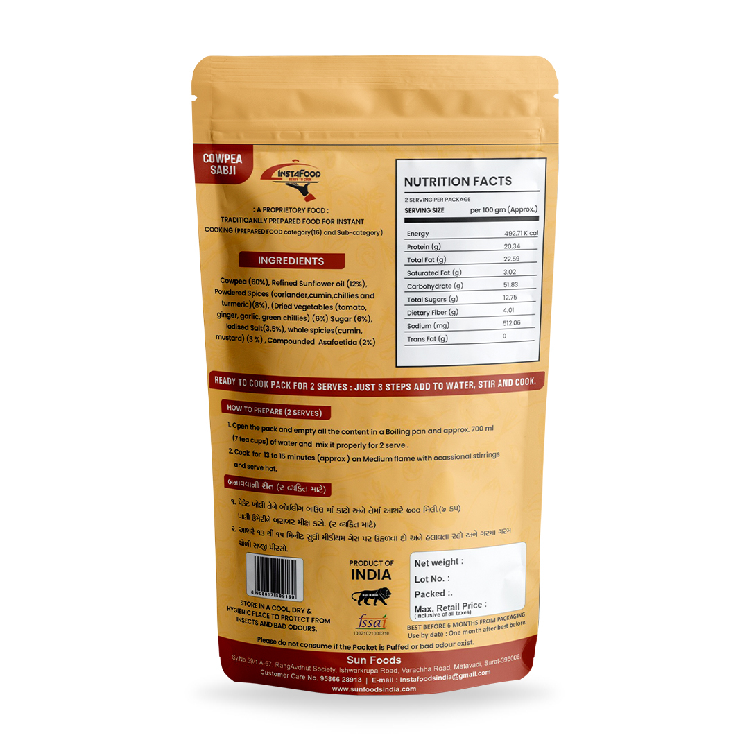 150 ग्राम इंस्टेंट चोली सब्जी मिक्स उपयोग: रेडी टू ईट फूड 2 सर्विंग