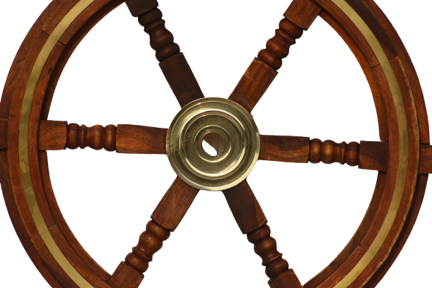 Explore in english - 18 Inch Wooden Ship Wheel With Brass Ring