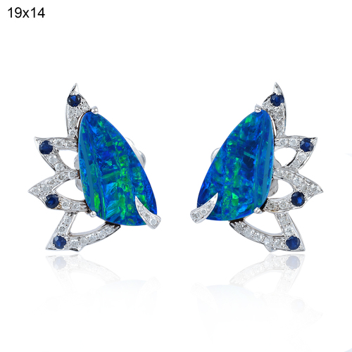 Explore in english - 18k Gold Sapphire & Opal Stud Earring
