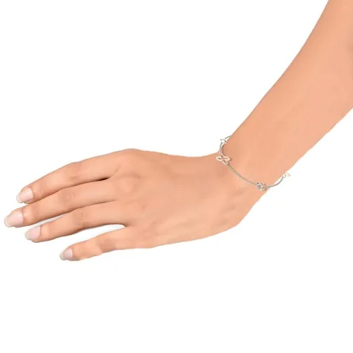 सिल्वर 2 टोन फ्लेक्सिबल चार्म ब्रेसलेट