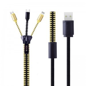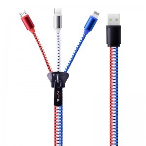 रेड/ग्रीन/येलो/ब्लू/ब्लैक/ग्रे/ऑरेंज/पर्पल/व्हाइट 3 इन 1 ज़िपर यूएसबी केबल