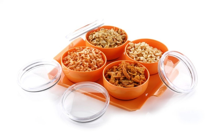 ट्रे के साथ प्लास्टिक 4 पीस ड्राई फ्रूट एयर टाइट बाउल