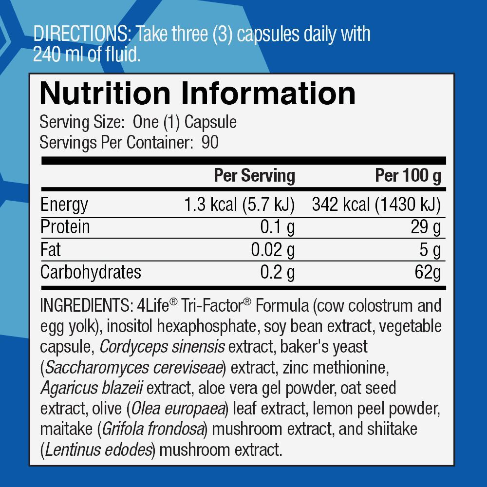 4लाइफ ट्रांसफर फैक्टर प्लस ट्राई-फैक्टर फॉर्मूला (90 कैप्सूल) डोज़ फॉर्म: कैप्सूल