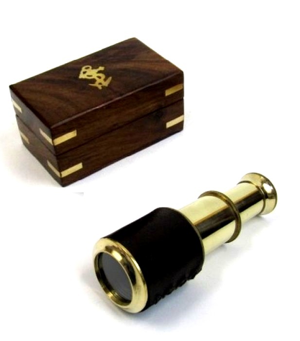 लकड़ी के बक्से के साथ 5 इंच ब्रास पुलआउट टेलीस्कोप बॉक्स के साथ नॉटिकल ब्रास टेलीस्कोप हैंडहेल्ड टेलीस्कोप - संग्रहणीय समुद्री उपहार