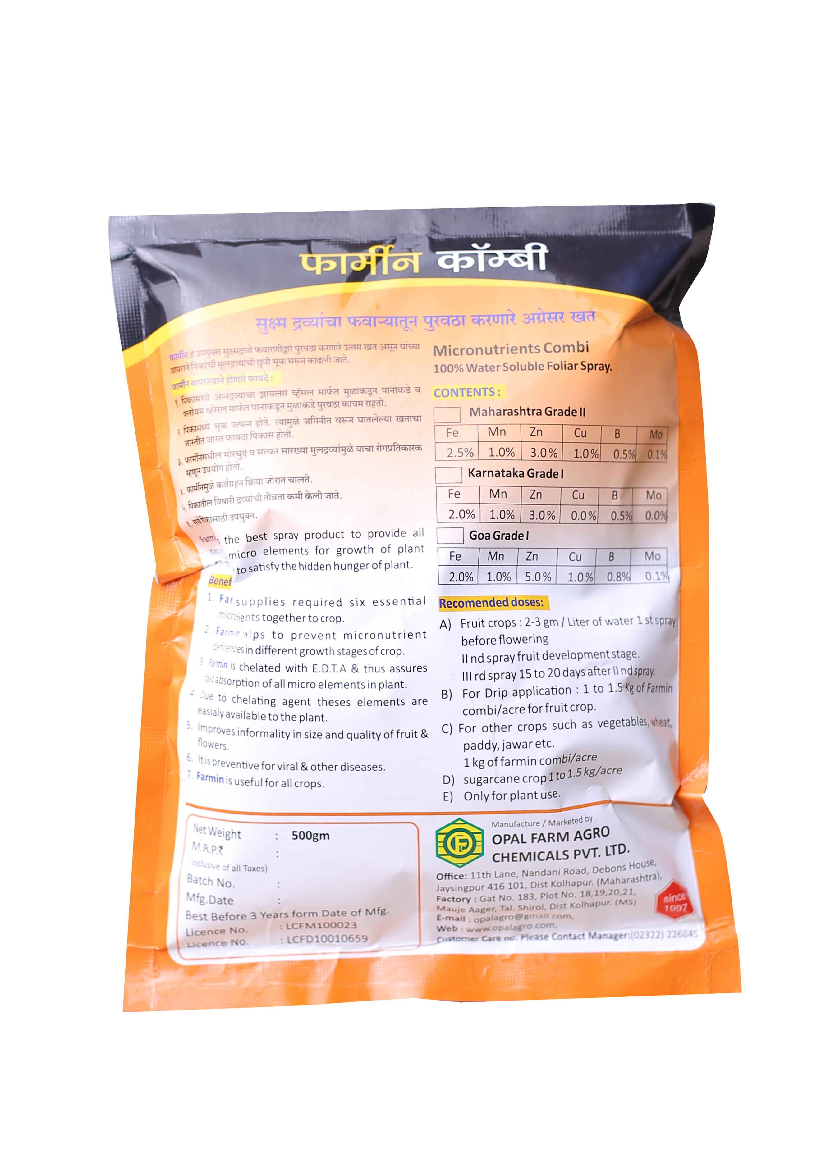 500 ग्राम फार्मिन माइक्रोन्यूट्रिएंट मिक्सचर उर्वरक आवेदन: कृषि
