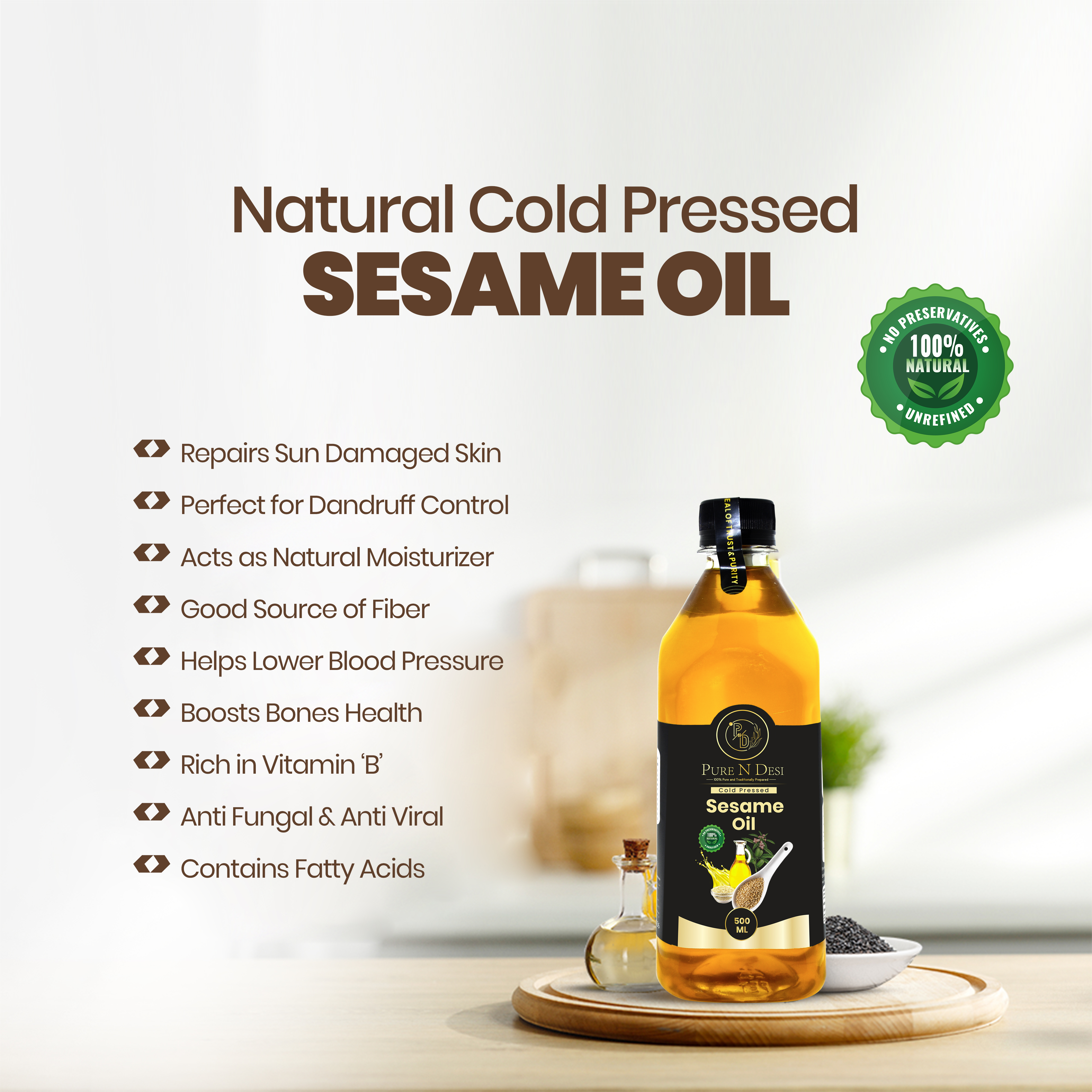 ऑर्गेनिक कोल्ड प्रेस्ड तिल का तेल 500 मिली पैकेजिंग का आकार: 1 लीटर
