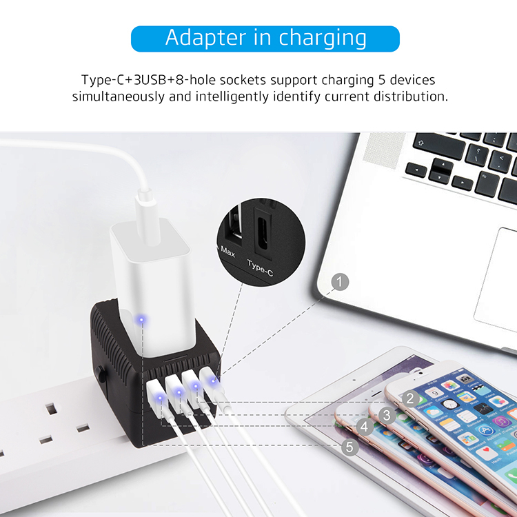 | उपयोग | 5V 5Amax total,each usb 2.4a, type c 3A |