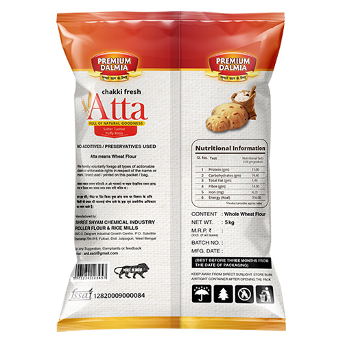 5 किलोग्राम स्वस्थ और पौष्टिक 0% मैदा साबुत गेहूं का आटा कार्बोहाइड्रेट: 75 ग्राम (G)