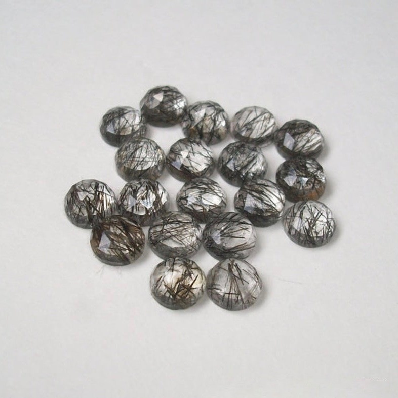 Explore in english - 5mm Black Rutilated Quartz Rose Cut Round Loose Gemstones