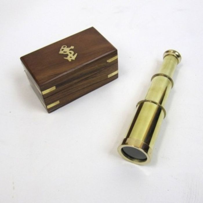 लकड़ी के बक्से के साथ 6 इंच फुल ब्रास स्पाईग्लास टेलीस्कोप नॉटिकल पुलआउट टेलीस्कोप ब्रास पाइरेट टेलिस्कोप मरीन प्रॉप गिफ्ट