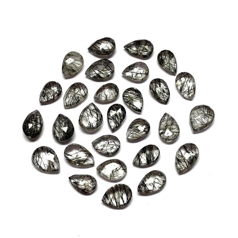 Explore in english - 7x10mm Black Rutilated Quartz Rose Cut Pear Loose Gemstones