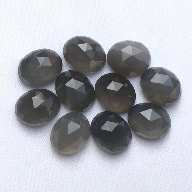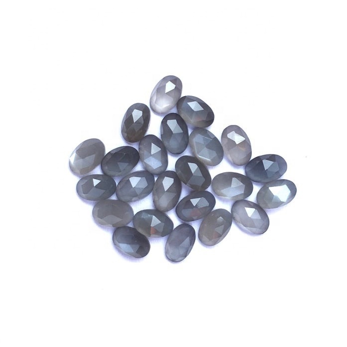 Explore in english - 8x10mm Gray Moonstone Rose Cut Oval Loose Gemstones