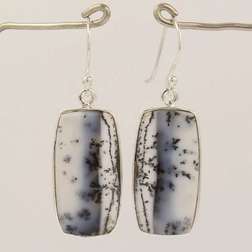 925 स्टर्लिंग सिल्वर ब्यूटीफुल ऑक्टागन शेप डेंड्रिटिक एगेट इयररिंग्स जेंडर: महिलाएं