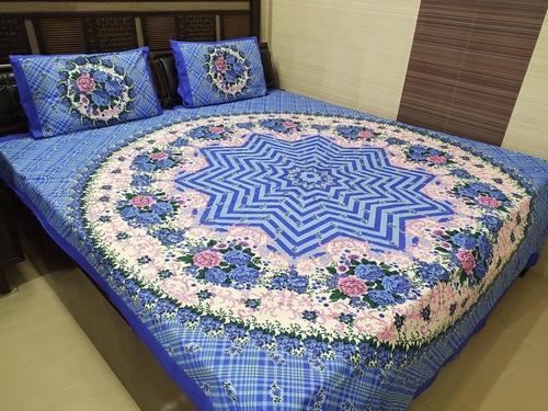 मल्टी एबीसी टेक्सटाइल प्रिंटेड प्योर कॉटन जयपुरी डबल बेडशीट और 2 पिलो कवर (90x100 इंच 220tc