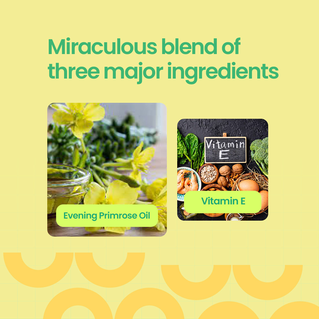 | सामग्रियां | Evening Primrose Oil | Vitamin E |