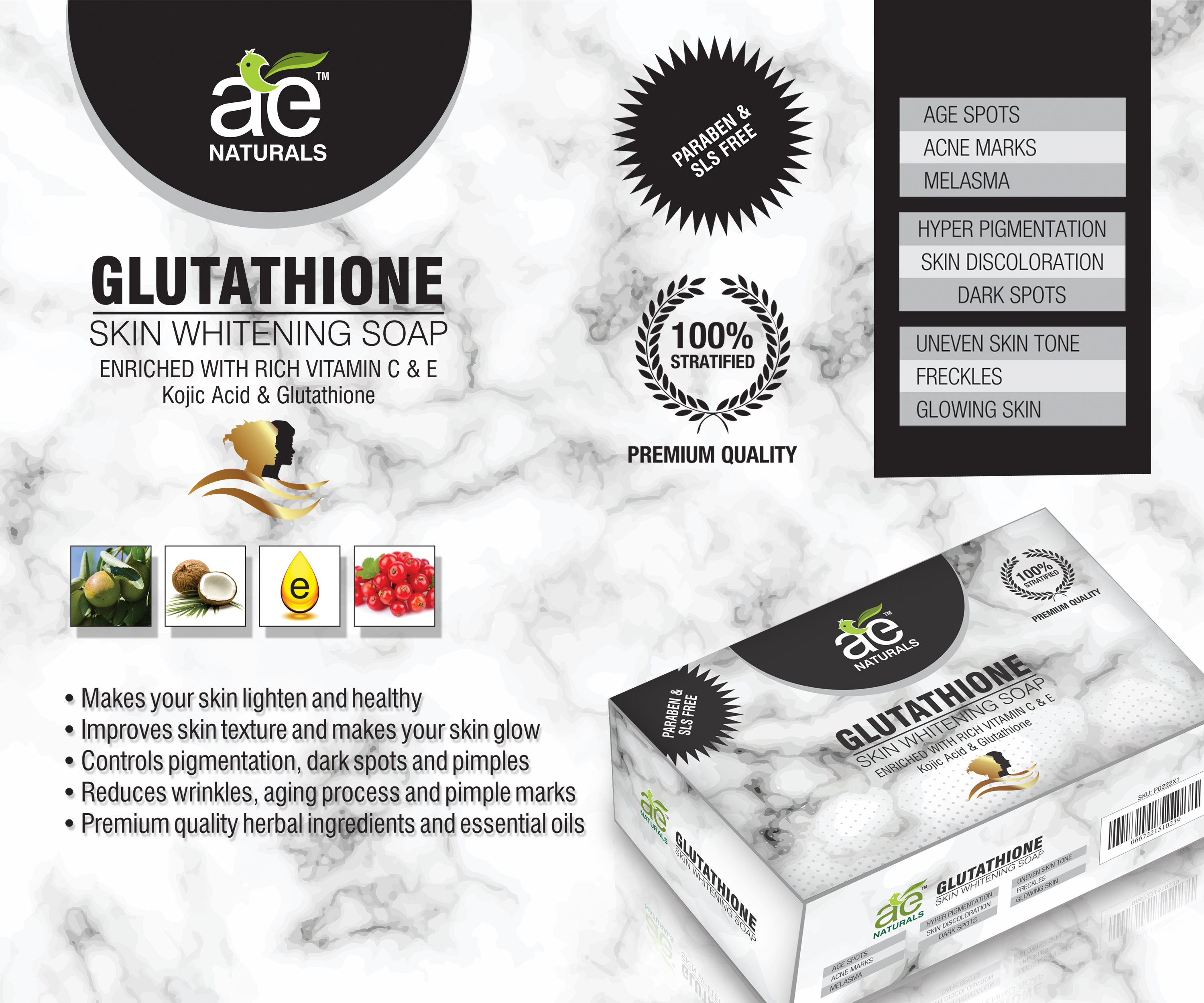 एक्टिव चारकोल और कोजिक एसिड के साथ Ae Naturals ग्लूटाथियोन स्किन व्हाइटनिंग सोप
