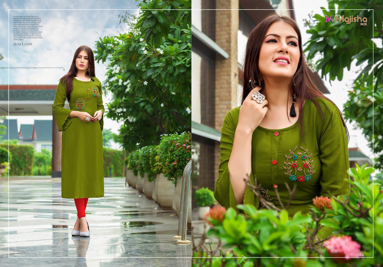 Explore in english - ALBELI 14 KG Rayon Slub With Handwork Kurti