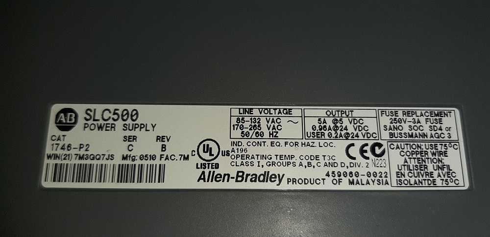- एलन ब्राडली पावर सप्लाई 1746-पी2 सी