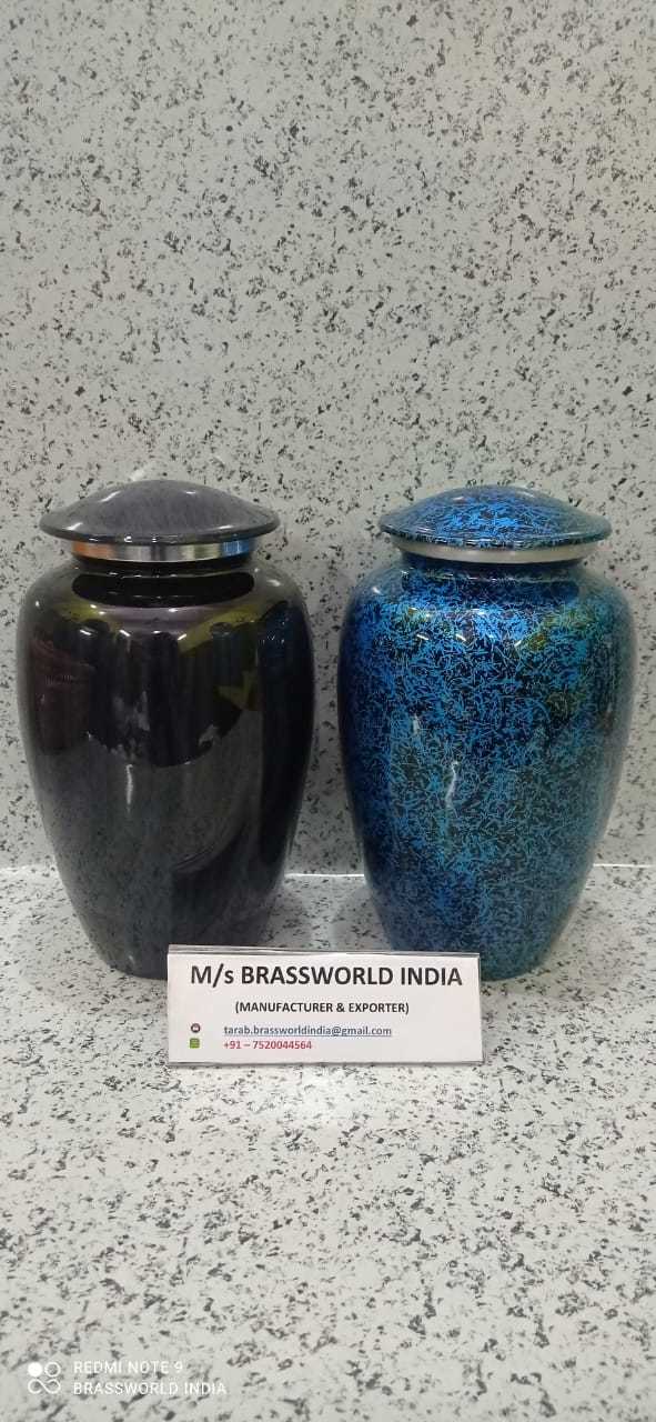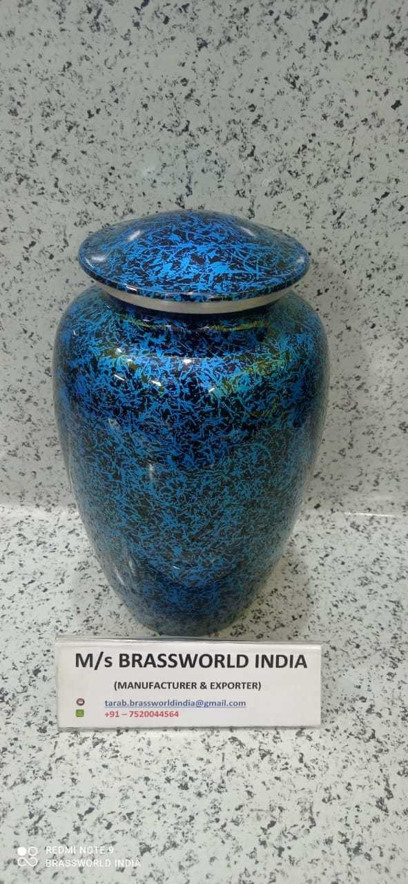 एल्युमीनियम नीला और काला टेक्सचर श्मशान कलश