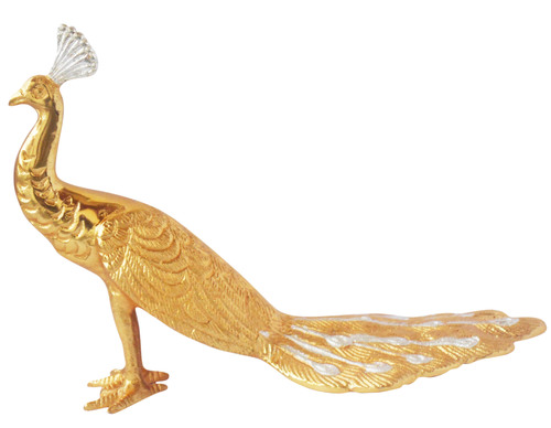 गोल्ड और सिल्वर फिनिश के साथ गोल्डन एल्युमिनियम पीकॉक - 11.6* 5* 8.2 इंच (Z344 C)