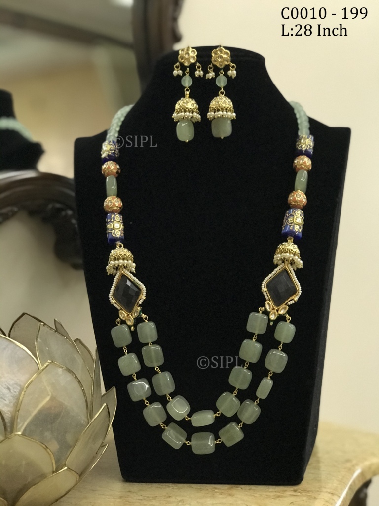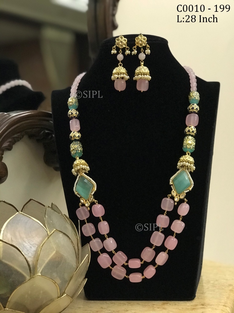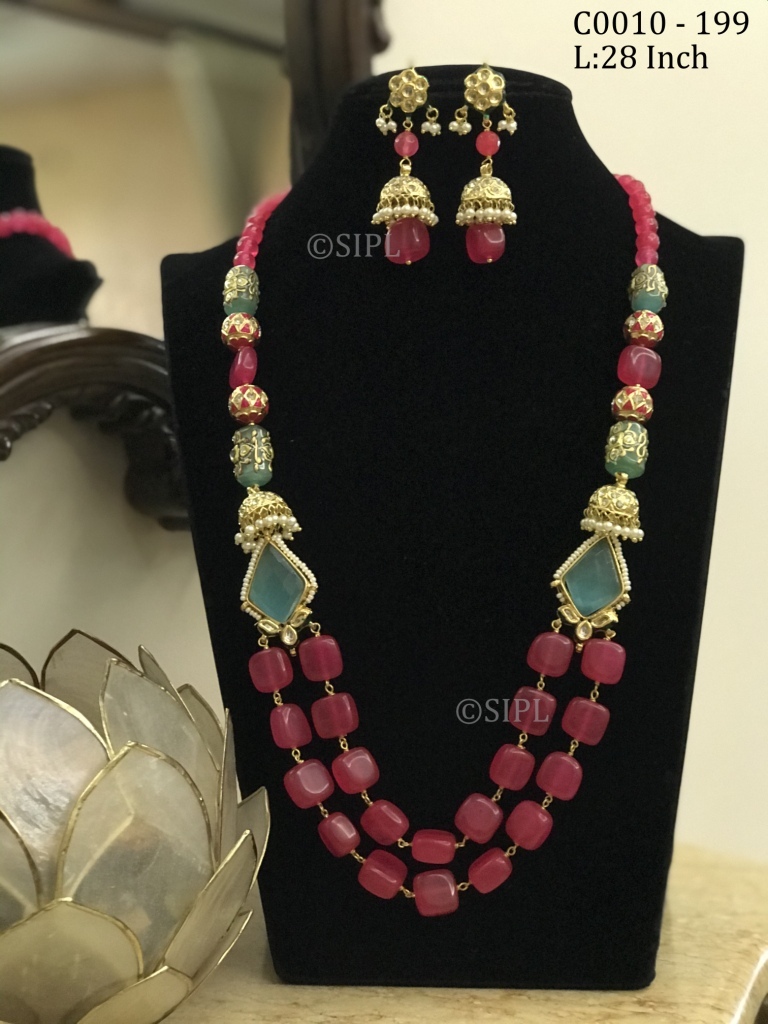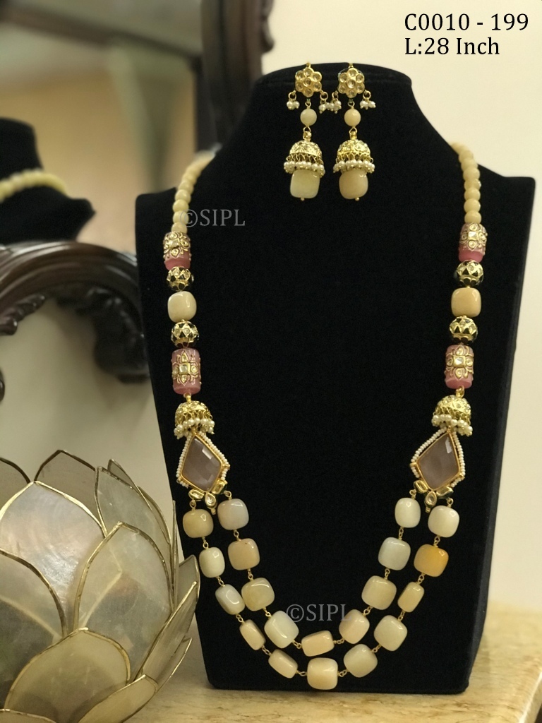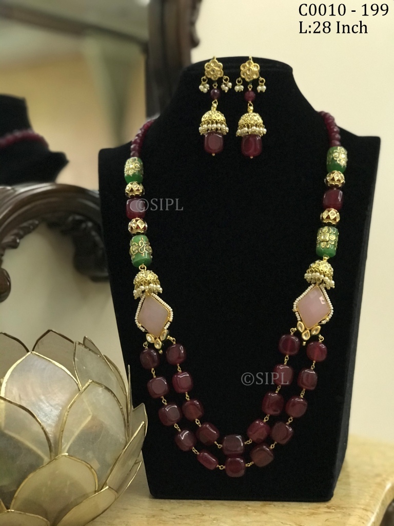 अद्भुत डिज़ाइन टम्बल स्टोन माला सेट ड्रॉप इयररिंग्स