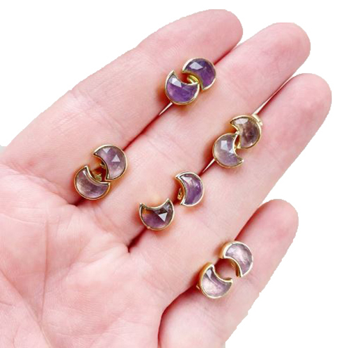 एमेथिस्ट जेमस्टोन 6x8 मिमी क्रिसेंट स्टर्लिंग सिल्वर गोल्ड वर्मील बेज़ल स्टड