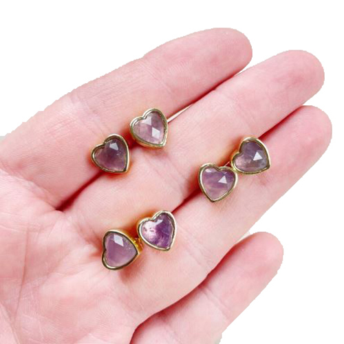 Explore in english - Amethyst Gemstone 9mm Heart Sterling Silver Gold Vermeil Bezel Stud